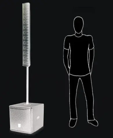 Mais alcance e potência média nas altas. Sub profundo e discreto. Som concentrado para espaços fechados delimitados.