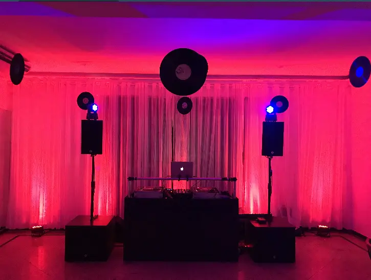 DJ ou banda com pocket show. Ideal para salões e pequenos teatros ou auditórios.